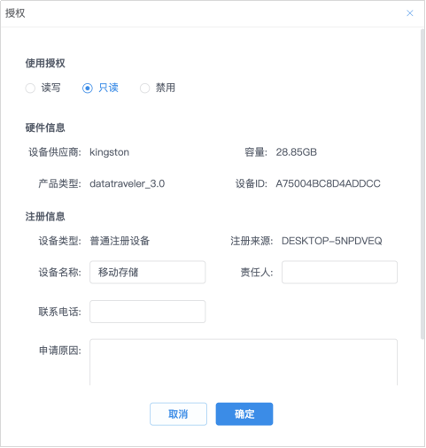 如果需要对特定的移动存储设备开放使用权限,需要进行设备注册。