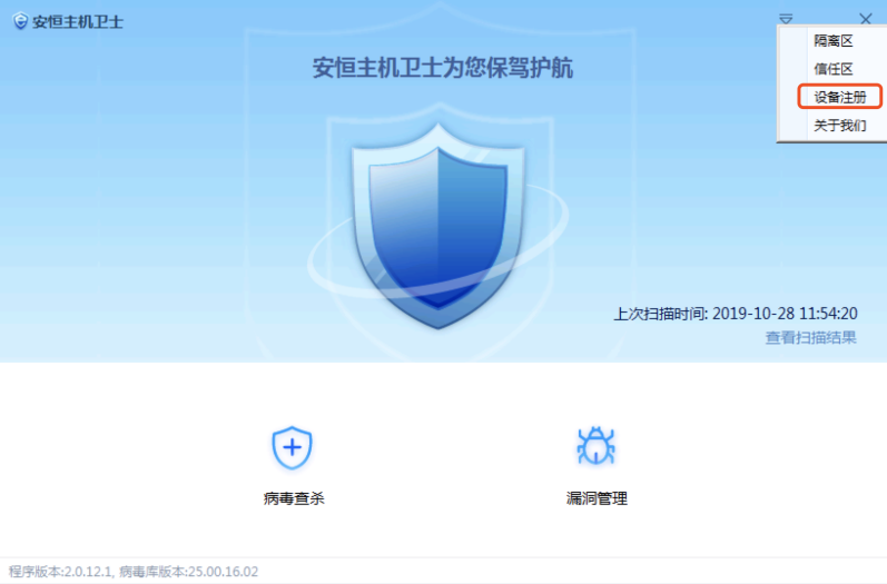 步骤1.打开主机卫士界面,找到菜单栏中的设备注册;
